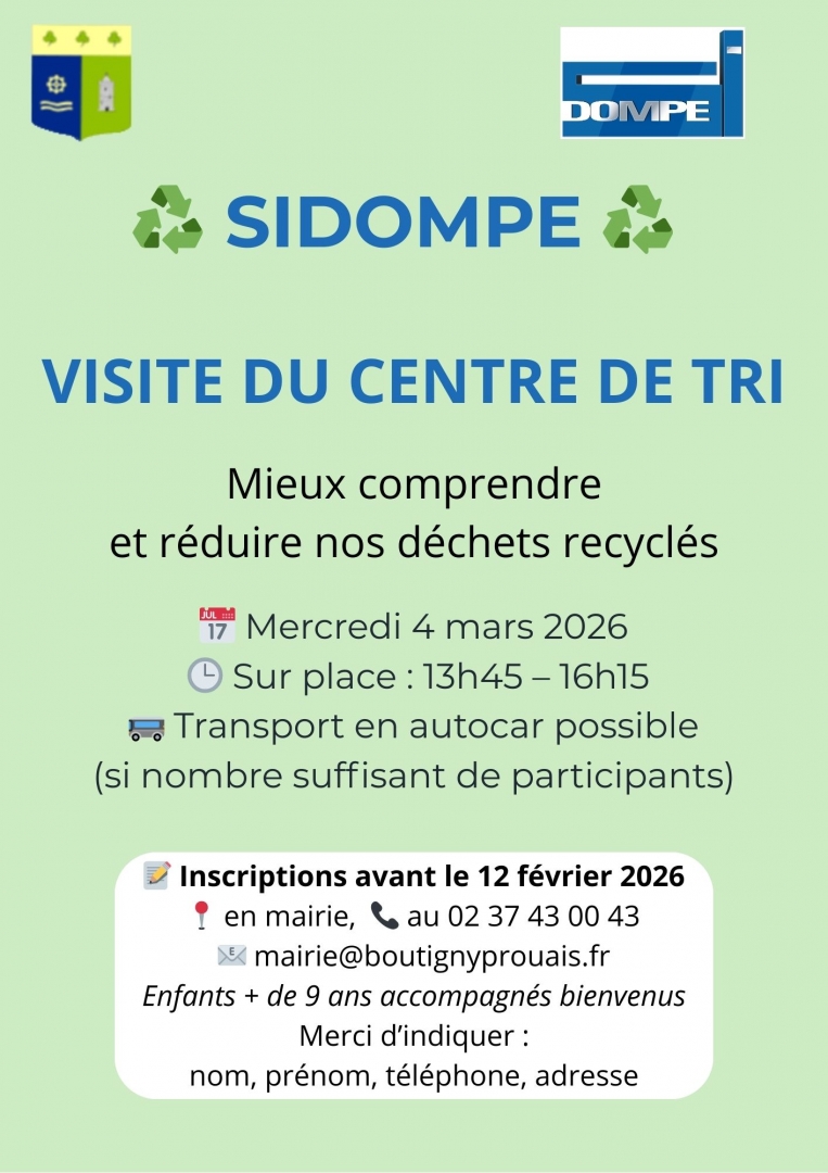 La mairie de Boutigny-Prouais vous propose une visite du SIDOMPE le :